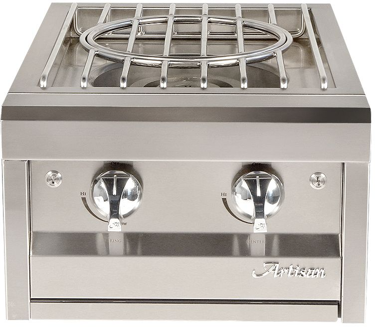 A premium cooking complement to your Artisan outdoor kitchen. Dual burner with independent controls. Up to 55,000BTU stainless steel burner set. Removable interior grate allows for easy wok cooking.Read More