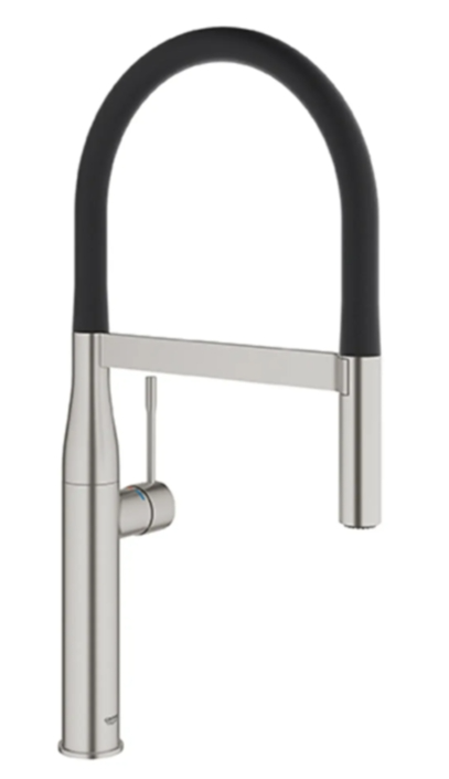 Reflecting minimalist beauty in its purest form, the GROHE Essence New Semi-Pro Single-Handle Dual Spray Kitchen Faucet is a natural choice for today’s cosmopolitan kitchen. This elegant single-hole kitchen faucet features a flexible, high-arched black hose spout with integrated spring to reach every corner of the sink. The dual function spray head with toggle function offers seamless switching between spray and regular water flow. Equipped with a forward-rotating lever handle to eliminate backsplash interference, the Essence New Single-Handle Kitchen Faucet allows for easy placement in any kitchen design. Flexible hose spout is available in multiple colors, sold separately, and easily snaps in place for a whole new look. See Model 30321_0 for details.Read More