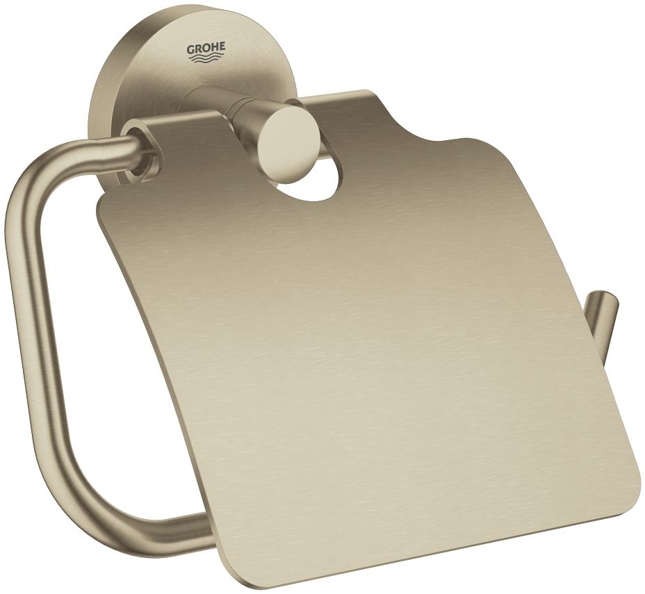 A metal Brushed Nickel Infinity finished toilet paper holder with a cover.Read More